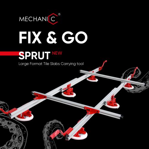 Modernizovaný transportní systém Sprut je určen pro zvedání, přemisťování a pokládku velkoformátových dlaždic (až 320×160 cm, hmotnost — do 500 kg). Sada obsahuje tašku na kolečkách pro snadné skladování a přepravu.